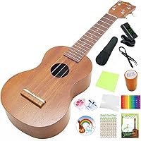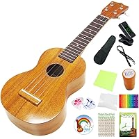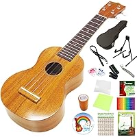 MUSOOソプラノウクレレソリッドトップマホガニーウクレレアクセサリーと21インチギグバッグストラップナイロン弦ピック付…