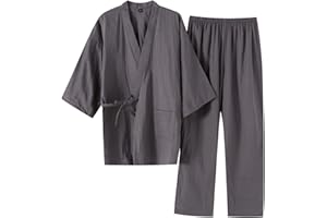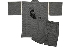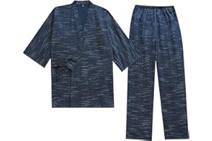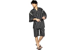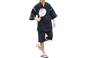 Poweforest 甚平 メンズ 綿100% 部屋着 紳士 夏 祭り 花火 涼しい 和服 上下 セット ルームウェア M/L/LL/3L