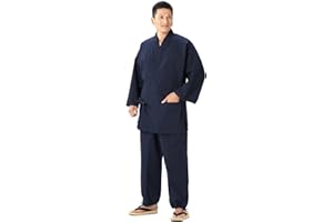 作務衣 メンズ サムエ 男物 綿100% ネイビー 紺色 裏地なし 普段着 部屋着 寝巻 作業着 飲食店 ユニフォーム 旅館 M L LL 165cm 175cm 185cm