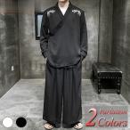 楊柳素材 上下セットアップ 和装 メンズ 甚平 サルエルパンツ 男性リラクシングウェア 伸縮 ストレッチ 部屋着 ルームウェア ズボン ボトムス リネン 麻混