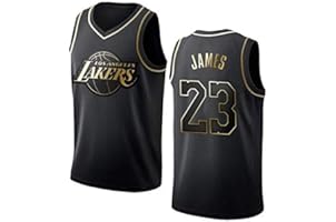 YSAメンズNBAジャージ-Lebron James#23レイカーズブラックゴールドバスケットボールノースリーブトップ、クラシックレトロトップTシャツ、メッシュ通気性スポーツウェア、L:180cm / 75〜85kg