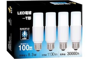 T形タイプ LED電球 E26口金 T形 100W形相当 8.3W 昼光色 6500K 1130lm 全方向タイプ 電球形蛍光灯 EFD25・EFD15代替推奨 断熱材施工器具対応 密閉形器具対応 一般電球 4個セット(昼光色)