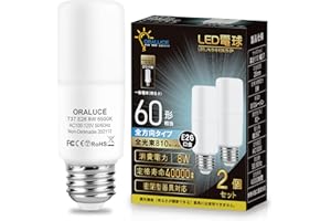 ORALUCE LED電球 T形タイプ E26口金 60W形相当 昼光色 8W 810LM 全方向タイプ 調光不可 断熱材施工器具対応 電球形蛍光灯EFD15 EFD25代替推奨 2個入