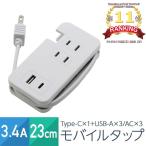 コンセント3個口 USB×1ポートUSB-C×1ポート 3.4A 23cm USB電源タップ 1400W 軽い