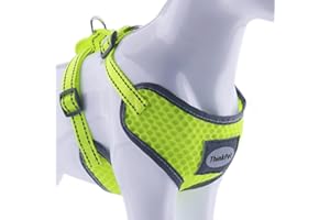ThinkPet 犬用引っ張らないスポーツハーネス ハンドル付き 中型犬 大型犬に向け 調節可能 装着簡単 通気性 反射材料 背中と前のクリップが簡単に支配 犬の体が負担が少ない胴輪