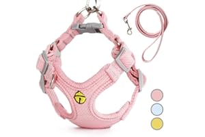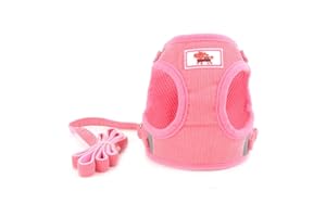 Miru pochi(ミルポッチ)猫 犬 ハーネス 小型犬 りーど 首輪 超小型犬 おしゃれ 子犬 子猫 胴輪 リード セット 抜けない 人気 調節可能 引っ張り防止 軽量 着脱簡単 散歩 (XXS ピンク)