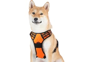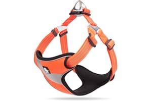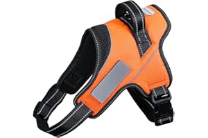 Rabbitgoo 犬 ハーネス 大型犬 首輪 20-32KG 引っ張り防止 サイズ調整可能 夜間反射材 抜けない 通気性 咳き込み防止 歩行補助ハーネス 老犬 介護用品 散歩 しつけ用 ソフト 犬 小型犬 中型犬 柴犬 (オレンジ)