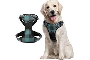 Rabbitgoo 犬 ハーネス 大型犬 20-32KG 引っ張り防止 負担が少ない首輪 足を上げず装着完成 歩行補助 介護 抜けない サイズ調整可 反射材料 ソフト 通気性高 しつけ 運動向き 小型犬 中型犬 大型犬 柴犬 秋田犬 (グリーンチェッ