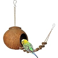オウムの巣 ケージ インコ 小動物用ハウス リスハウス ハムスターおもちゃ ココナッツ殻 天然素材 はしごのおもちゃ付き…
