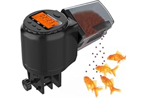 AUKOW 魚自動給餌器 餌やり器 熱帯魚 定時 餌をやる - 金魚用 配給量が調整可能 LEDディスプレイ 簡単な操作 静音 コンパクト ベルクロ付き 2つの取り付け方 水族水槽用 家庭用