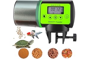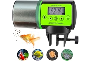 BlueFire 魚自動給餌器 餌やり器 オートフィーダー 熱帯魚 金魚 水族水槽用 多段階&多回転数 自動餌やり機 配給量調節可能 静音 留守中の餌やり グリーン