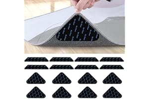 滑り止めシート 16枚 超強力 滑り止めマット 【ネット加固・跡残らない・水で洗うと粘性が回復】カーペットパッド滑り止めテープ カーペット、マット、ラグ、ソファなど様々なものに適しています(三角形90*90mm×8+台形30*180mm×8)。