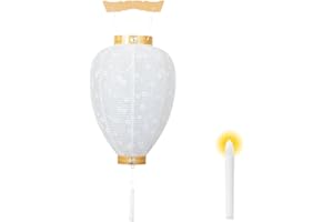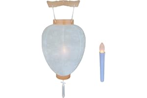 漆ぷろだくと 岐阜提灯 盆提灯 盆ちょうちん お盆提灯 御所提灯 LEDローソク 電池灯付き コードレス 高さ48cm×火袋径28cm 白 和紙張 吊り提灯 白紋天 国産