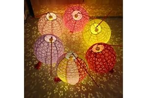 DUOLEIMI 提灯 お盆 紙ちょうちん 透かし彫り 紙提灯 お盆飾り LED付き 燈籠 カラフル 10個セット (丸型)