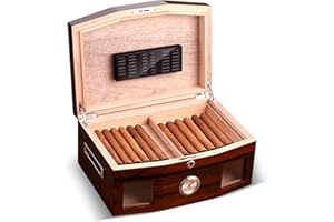 ヒュミドールハイグレードシダーメロウシガーモイスチャライジングシガレットケースダブルストレージ、ロック付き、加湿器80〜100本の葉巻を収納可能