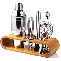 750ml家庭用ステンレスカクテルミキサーキット バーテンダー最高ツール 竹製スタンド付き パーティーグッズ バー 練習…
