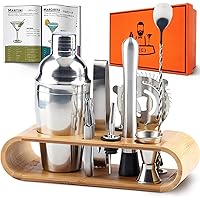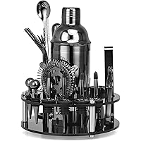 カクテルシェーカー バーセット、20ピースのステンレス鋼カクテルシェーカーバーツール、回転式ディスプレイスタンドとレシピ…