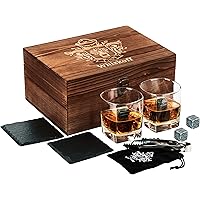 ウイスキーグラスストーンギフトセット−スコッチバーボンタンブラー−木製のギフトボックスに入ったウイスキーストーン−バーボ…