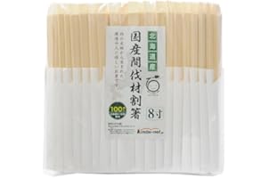 溝端紙工印刷 【国産間伐材割り箸】無添加天削げ箸8寸-無地箸袋入り(100膳入) 日本製 白