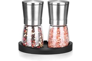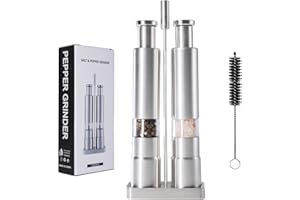 Joyoldelf ペッパーミル 電動 胡椒 花椒 岩塩 ソルト スパイス用 ステンレス 粗さ調節可能 2パック