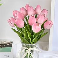 Pknoclan ピンクチューリップ造花 、10本入りの花束、アートフラワー 枯れない花 作り物の花束 シルク製ブーケ…