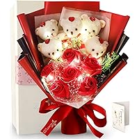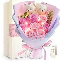 FAUHAL LEDライト付き ソープフラワー 石鹸花 バラ 造花 敬老の日 プレゼント 花束 くま束 枯れない花 ぬい…