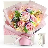 RERXN led ソープフラワー 花束 ブーケ 枯れない花 薔薇 レインボーフラワー(7輪) レインボーローズ お花…