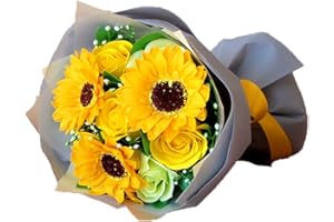 [Amazon限定ブランド] SaikaLife ソープフラワー 花束 イエロー ひまわり&ローズ 誕生日 お祝い お礼