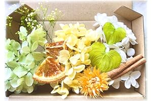【花材アソートBOX】アジサイ カスミ草 プリザーブドフラワー ドライフラワー ハーバリウム ワックスサシェ キャンドル レジン (オレンジ×グリーン)