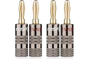 FosPower (4本セット / 2ペア) バナナプラグ コネクタ【ねじ込み式 / 24k 金メッキ / 金属シェル】ソルダーレス スピーカーケーブル / スピーカーワイヤー / 壁プレート用