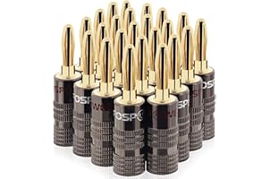 FosPower (24本セット / 12ペア) ソルダーレス バナナプラグ コネクタ【リア接続タイプ / 24k 金メッキ/金属シェル】 ネジ締め方式のバナナプラグ スピーカーケーブル スピーカーワイヤー 壁プレート用