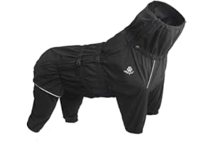 ASMPET 犬 レインコート ポンチョ 小型犬 防水 防雪 ペット用品 雨具 お腹エプロン 泥除け 犬 レインコート カッパ 快適 いい素材 犬 レインコート 完全防水 背中開き 犬用 レインコート 通気性 可愛い ブラック S (胴回り: 44-