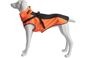 ASMPET 犬 服 冬 コート 防雪 防寒 犬服 春 秋 冬服 ペット服 犬服 防風 フリース 暖かい 犬 ジャケット 防水 背中開き 犬の服 洋服 ハーネス付き 愛犬のお散歩 夜間反射 小型犬 オレンジ XS (胴回り: 58-63cm)