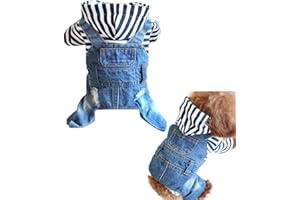 ABRRLO 犬服 フード付き つなぎ デニム ロンパース 四腿 ペット服 レジャー風 ジーンズ ジャケット 春夏秋 コート パーカー 袖なし 中小型犬 ドッグウェア おしゃれ 可愛い (XXL, A)