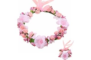 ハロウィン 花冠 花かんむり お花の 冠 花冠 ヘッドドレス 髪飾り ヘアアクセサリー ウェディング ダンス衣装 ロマンチック お花の冠 腕輪 パーティー 結婚式 写真撮影 2次会 発表会 演奏会 コンサート (オレンジ)