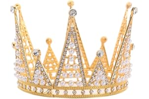 BESTOYARD ブライダル クラウン 花嫁 髪飾り ラインストーン パール ティアラ 結婚式パーティー ケーキ デコレーション ヘアアクセサリー (ゴールデン)