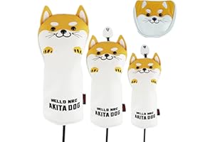 Lanx. ゴルフカバー 秋田犬 黄色 ゴルフ キャラクター ヘッドカバー ドライバーカバー ウッドカバー フェアウェイウッド ユーティリティカバー アイアンカバー G FW UT I 番号札付き 動物 440cc 460cc レザー ゴルフ用品 か