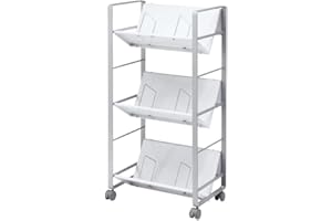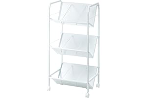 イーサプライ ファイルワゴン 3段 A4 キャスター スチール製 斜め棚 本 書類 収納 高さ112cm 幅56cm 総耐荷重60kg ホワイト EEX-FWG01