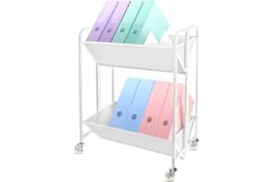 Benestand ファイルワゴン 2段式 キャスター付き 4枚仕切り板付き 移動可能 100kg高耐荷重 45°傾斜棚板 左右落下防止網板付き 幅58x奥行き35x高さ75cm オフィス書類/書籍収納 オフィス/書斎/図書館/学校/在宅勤務に適用