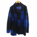【中古】ジ エルダー ステイツマン The Elder Statesman カーディガン ロング丈 ボーダー柄 カシミヤ M 青 ブルー 黒 …