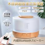 加湿器 おしゃれ 超音波 Bluetoothスピーカー アロマ リモコン付き アロマディフューザー 木目調 LEDライト 500ML タイマー 空焚き防止 雰囲気作り プレゼント