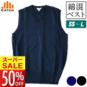 \楽天スーパーSALE☆ポイント10倍/ スクールベスト 綿混 女子 コットンニット 紺 黒 SS S M L オールシーズン 中学…