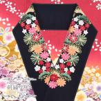 刺繍半襟 刺繍半衿(黒地 赤・ピンク 菊松梅枝 13463】日本製 シルエリー はんえり 振袖 袴 成人式