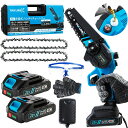 【バッテリー2個】チェーンソー 充電式 電動チェーンソー ハンディチェーンソー 6インチ 8インチ 21V ミニチェーンソー 小型 自動給油 女性 軽量 強力 家庭用 庭