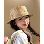 帽子 ハット クロスステッチリボン麦わらHAT レディース