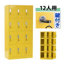送料無料 ロッカー おしゃれ スチールロッカー 12人用 イエロー 鍵付き スペアキー付き 3列4段 スチール製 収納 オフ…