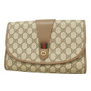 【5fa0561】グッチ クラッチバッグ GGキャンバス/シェリーライン 89 01 030 PVC ベージュ ブラウン ゴールド金具【中…