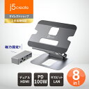j5createノートパソコンスタンド & USB-C 8in1デュアルディスプレイ ドッキングステーション磁石固定アルミ合金スタン…