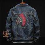 デニムジャケット メンズ ジージャン かっこいい 刺繍デニム スカジャン Gジャン ジージャンジャケット オールシーズン 春秋 おしゃれ