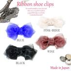 SC-074【Made in JAPAN 日本製 】【4色展開】光沢のあるオーガンジー素材を使用した大きなリボンシューズクリップ♪1ペア(1足分)